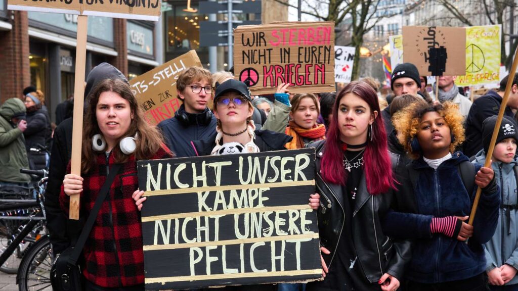 Het Duitse parlement heeft een belangrijke stap gezet richting een nieuw wehrdienst-systeem. Daartegen protesteerden op 5 december scholieren in ongeveer 90 Duitse steden onder het motto ‘Schulstreik gegen Wehrpflicht’ (schoolstaking tegen legerdienst). Zij verzetten zich vooral tegen de geplande verplichte keuring van alle mannen geboren vanaf 2008, die vanaf 1 januari 2026 zou ingaan.